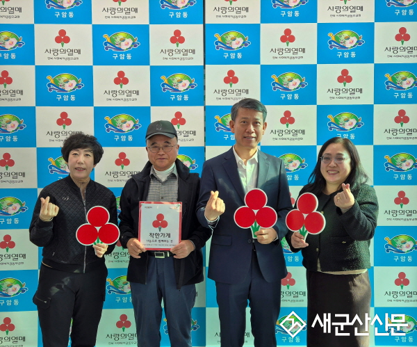 이번에 가입한 착한가게는 ▲수산물센타(대표 주환균) ▲장국명가(대표 최장국) ▲다온밥상(대표 김성균)으로, 이들은 매월 수익의 일부를 기탁해 구암동 복지 사각지대 해소를 위한 재원 마련에 힘을 보태게 된다.