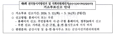 제 9회 전국동시지방선거 및 국회의원재선거(군산시·김제시·부안군갑선거구) 거소투표신고 안내