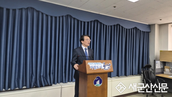 지난 16일 오전 군산시청 브리핑룸에서 출마 기자회견